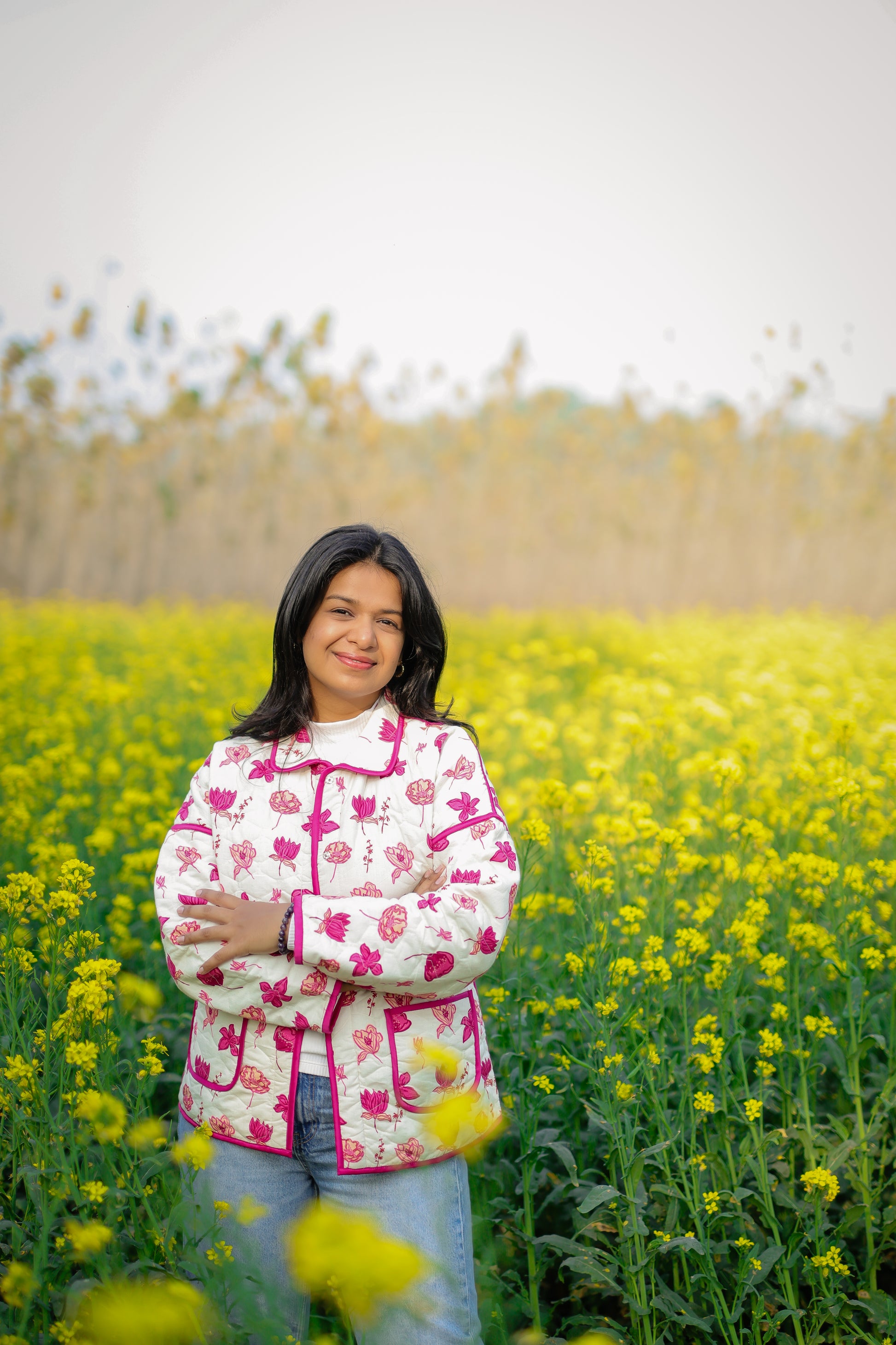 Quilted in our in-house printed cotton, this jacket features delicate piping and easy side pockets. A relaxed layer that feels playful, polished, and effortless.