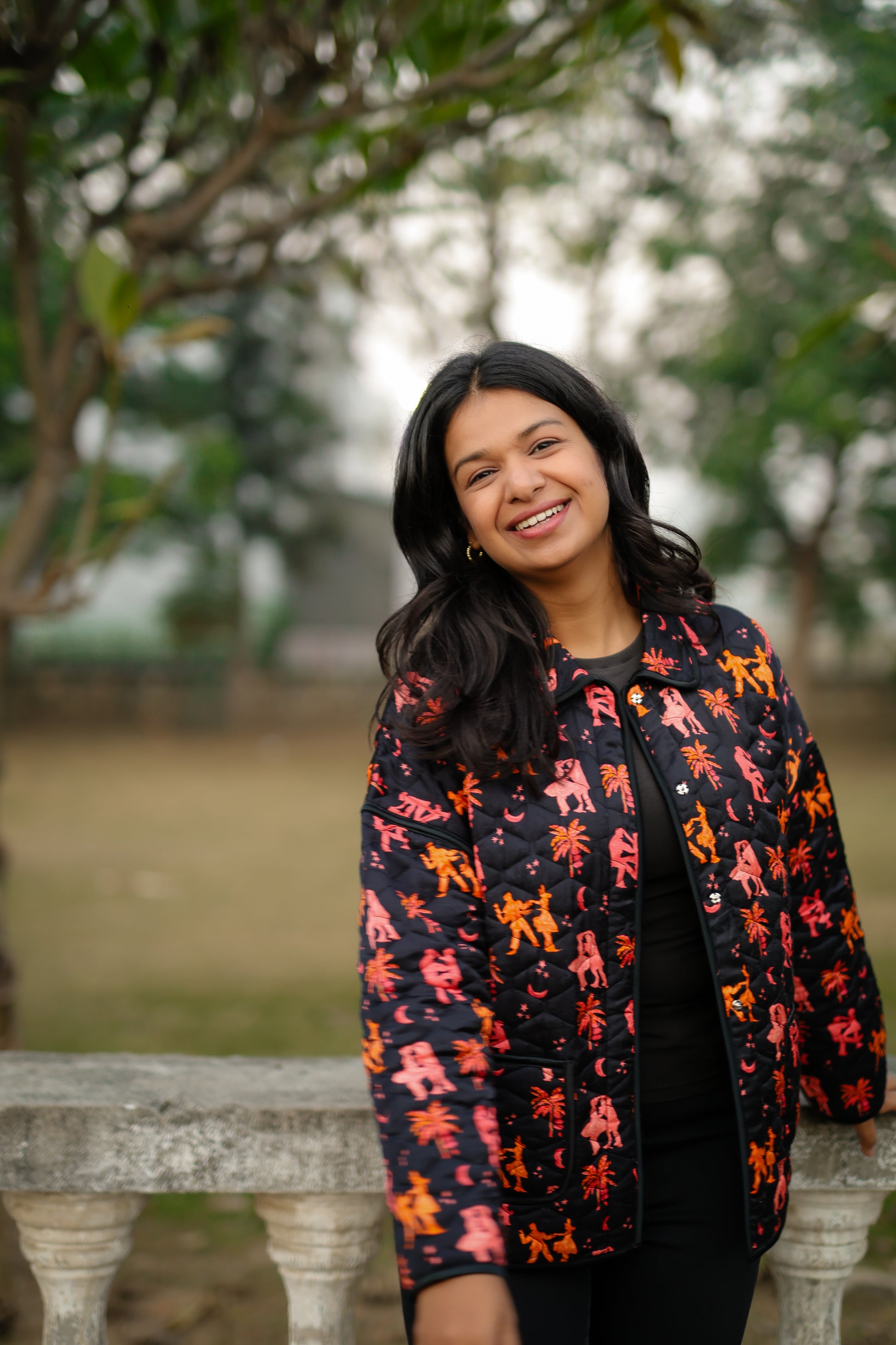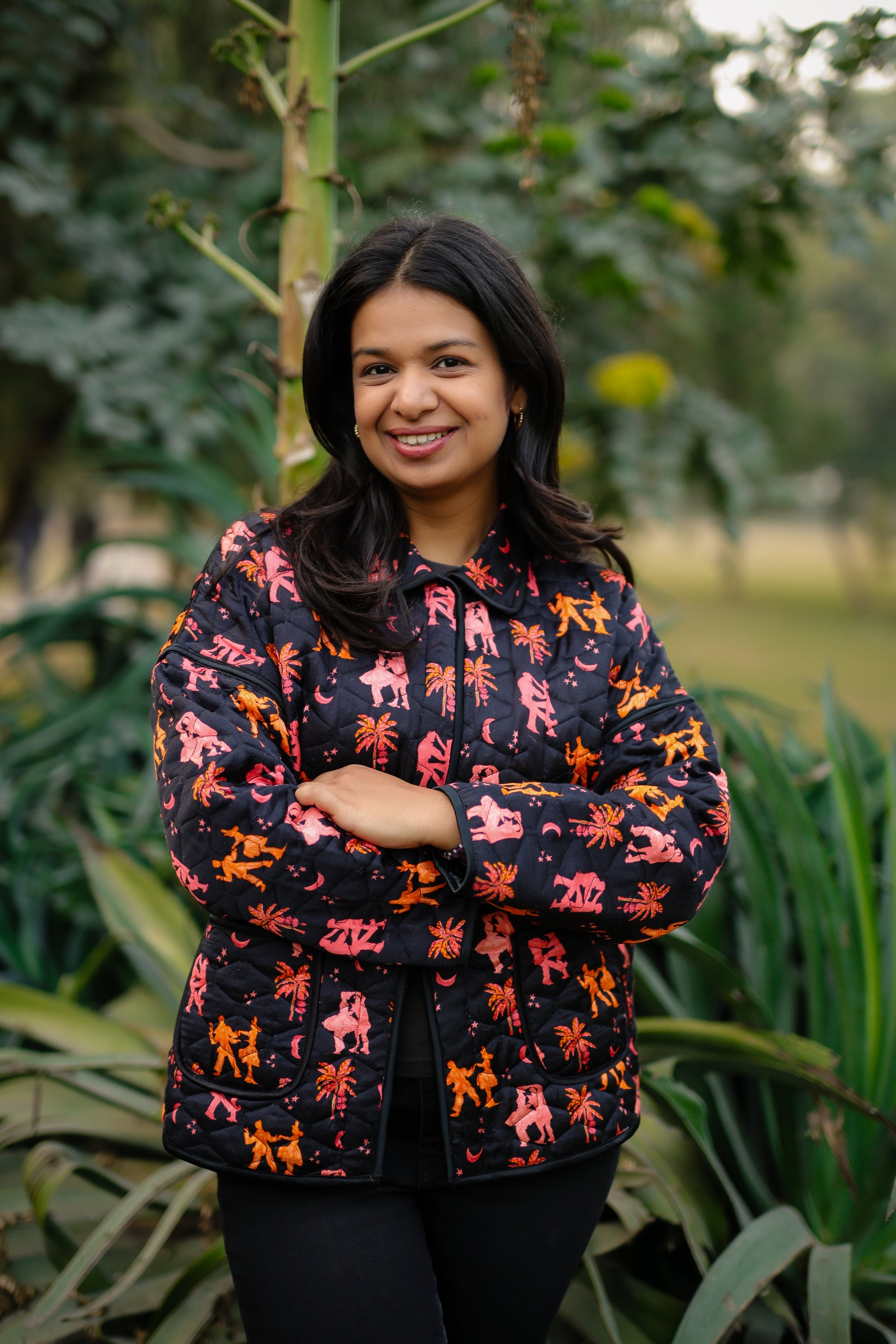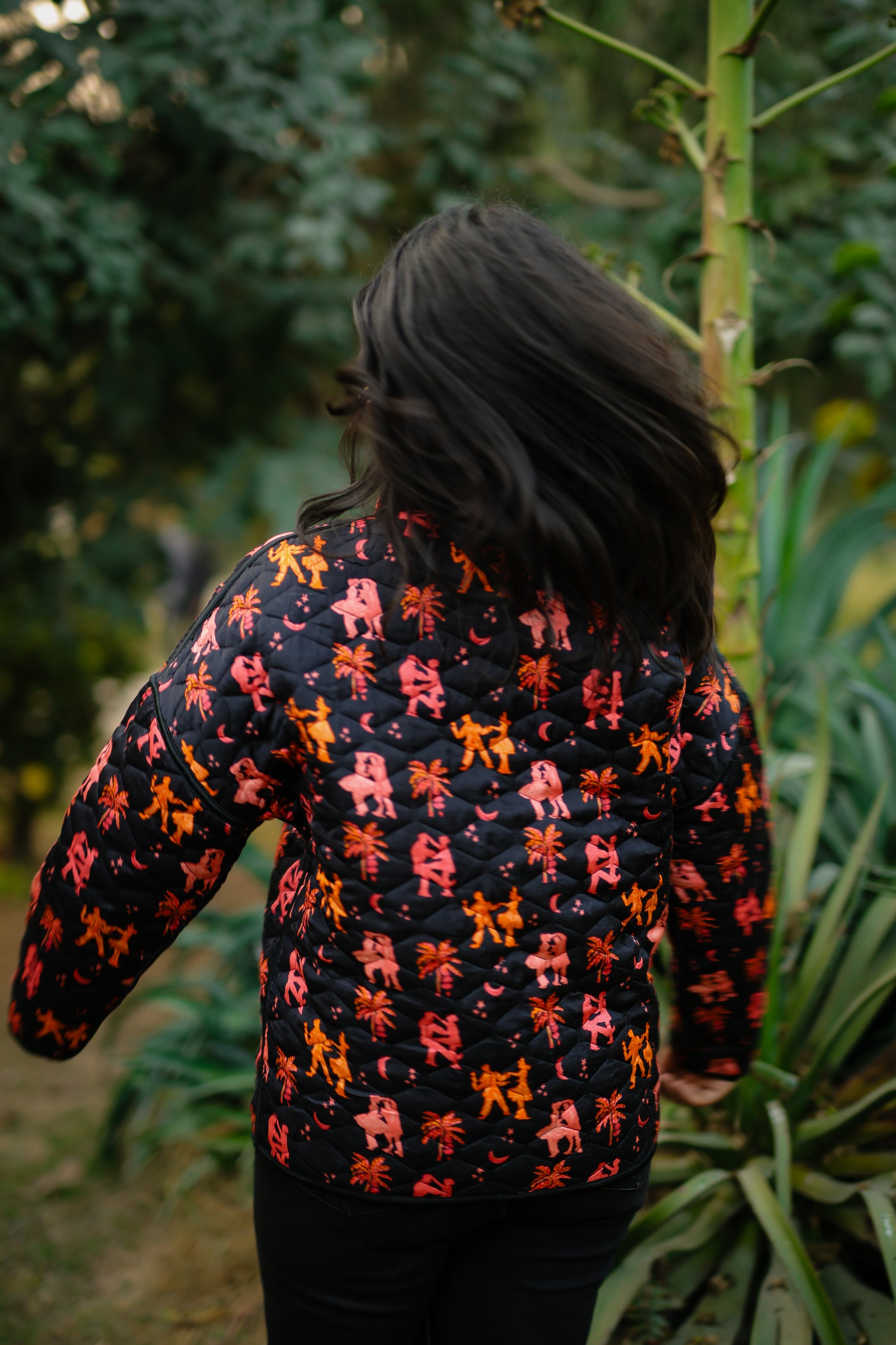 Quilted in our in-house printed satin, this jacket features delicate piping and easy side pockets. A relaxed layer that feels playful, polished, and effortless.